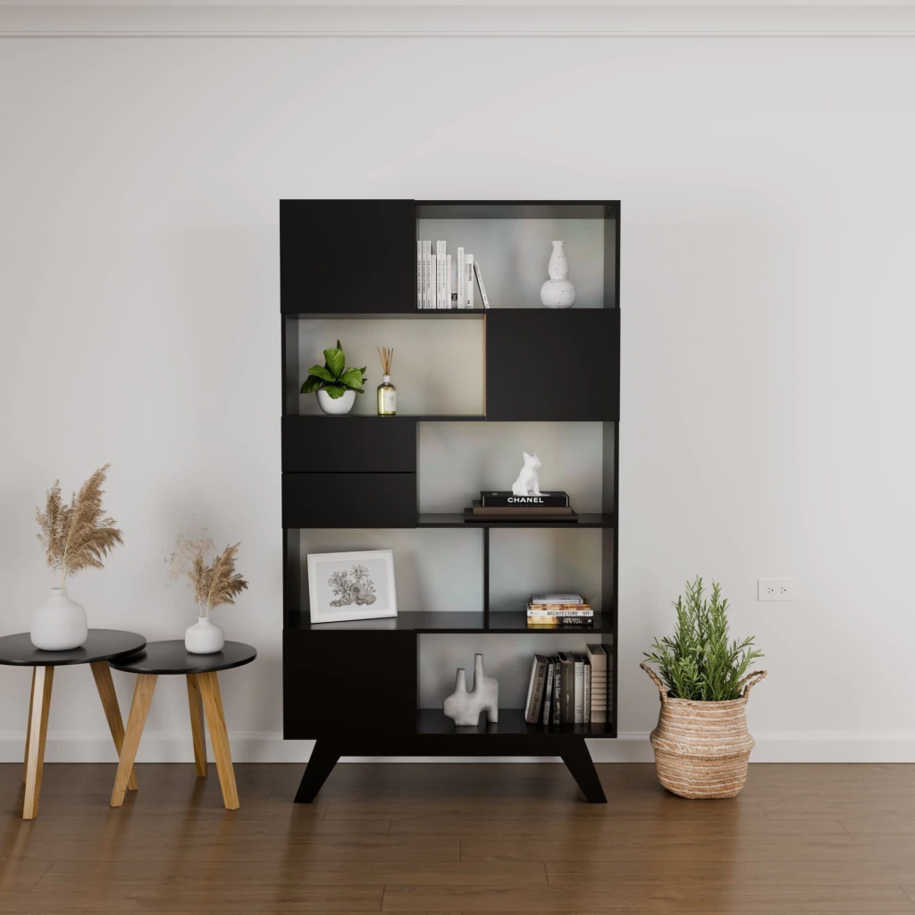 Una solución completa y elegante para mantener tus cosas ordenadas y tu hogar organizado. Con tres puertas y dos cajones, este mueble ofrece un amplio espacio de almacenamiento para tus libros, documentos y otros objetos personales, manteniéndolos fuera de la vista y bien organizados.