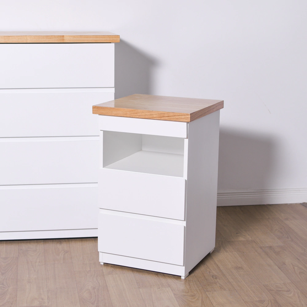 - Sin herrajes, el frente de cajón contiene un corte 45º para un agarre simple.