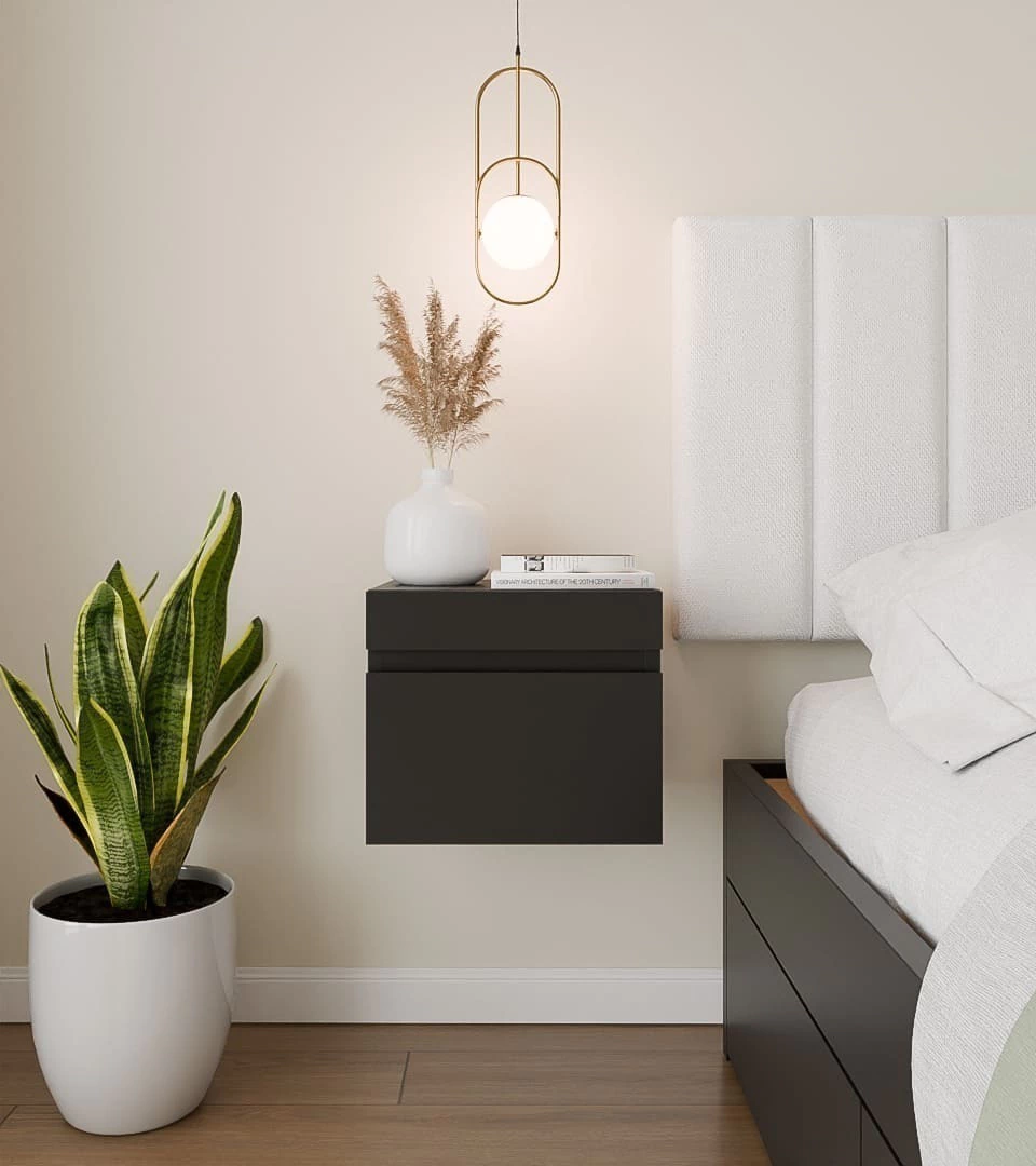 Si te gusta desayunar en la cama, nuestra mesa de luz con bandeja desplegable es la opción perfecta para ti. Su diseño funcional se adapta perfectamente a tu espacio y necesidades, brindándote la máxima comodidad cada mañana. Además de su funcionalidad, cuenta con un sistema de instalación oculto, asegurando un diseño visualmente limpio y elegante.
