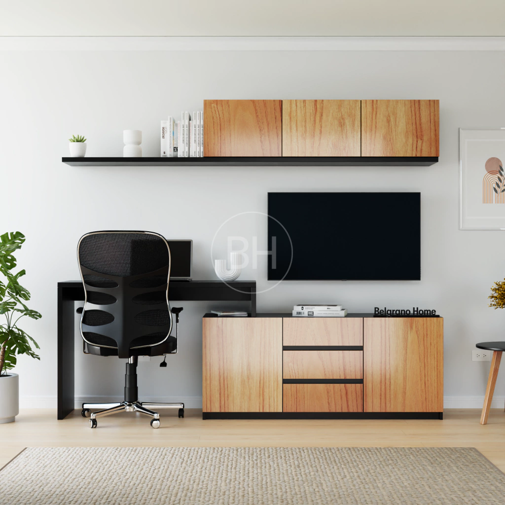 Tu rincón de estudio merece la máxima comodidad y en Belgrano Home creamos el modular perfecto para lograrlo. Este mueble combina estanterías amplias y escritorios funcionales en un diseño adaptable. Con una parte inferior en disposición de “L”, es ideal para organizar tus espacios de trabajo, logrando un ambiente cómodo y práctico para tus tareas diarias.